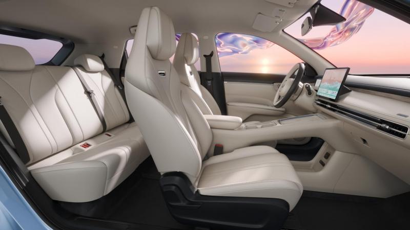 Area konsol tengah dilengkapi dengan wireless charging yang dirancang untuk kemudahan pengguna. Mobil ini mengadopsi tata letak kabin yang "mengayomi" dengan dua pilihan interior: putih lembut dan coklat hangat, dilengkapi dengan aksen kayu bertekstur 3D.