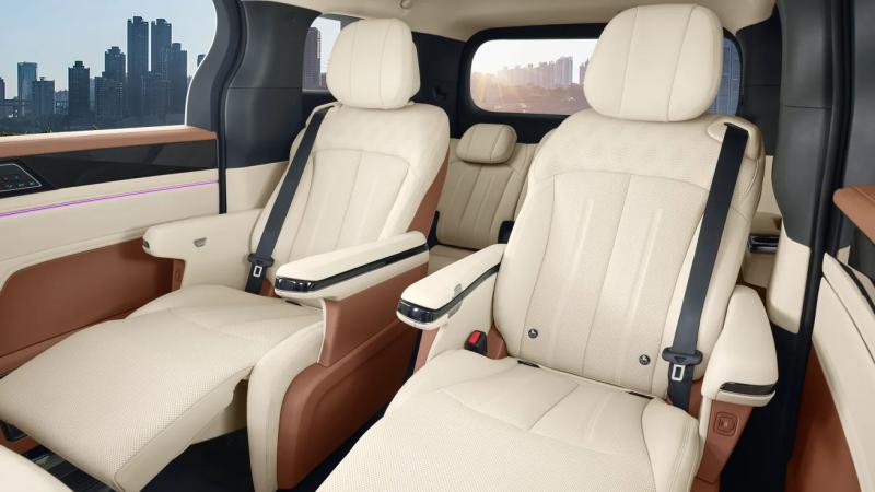 Di bagian dalam, MPV 7-seaters ini menawarkan kabin yang luas dan mewah dengan dua varian, Advance dan Premium. Varian Premium, dilengkapi captain seats dengan fungsi ventilasi dan pijat, sistem infotainment 15,6 inci, serta sistem suara 12 speaker.