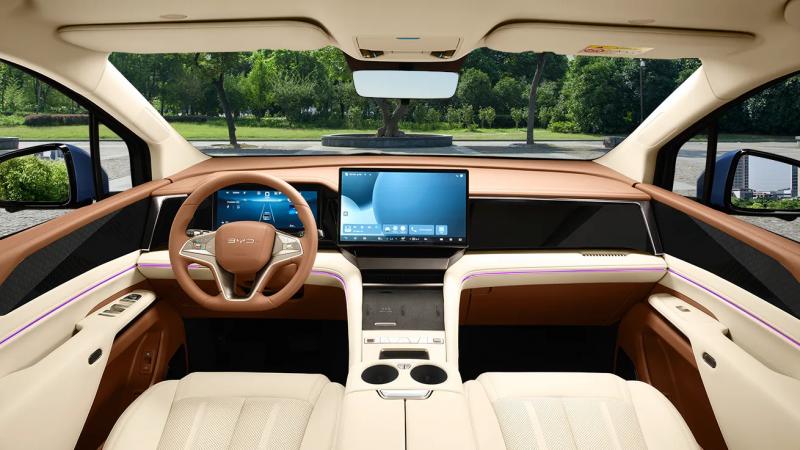 Dari segi penampilan, eMax 9 DM-i memancarkan aura kemewahan yang kuat. Fasia depannya didominasi oleh gril besar yang mencolok, dipadukan dengan aksen perak dan lencana BYD yang elegan, mengadopsi bahasa desain "Dragon Face".