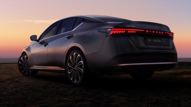 Tampilan Nissan Teana kini lebih ramping, memanjang, dan halus. Fitur desain yang paling menonjol adalah lampu LED ‘star ring’ yang membentang dari pusat gril depan hingga ke unit lampu utama di kedua sisi, menciptakan tanda tangan visual yang khas.