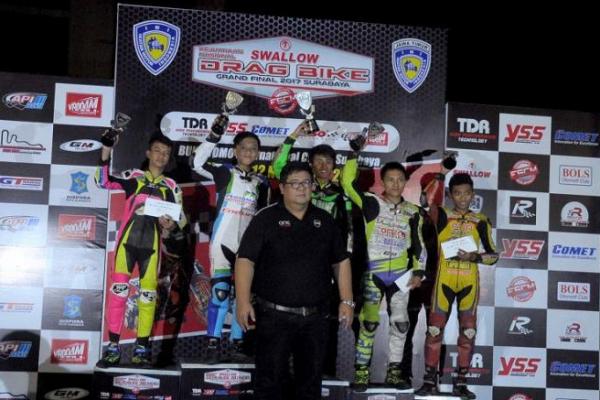 motorinanews (Surabaya) – Alfan Imas Dwi Nandar atau yang akrab disapa Alfan Cebonk dragster andalan Pertamax Motorsport Drag Bike Team, berhasil meraih gelar juara nasional di ajang Grand Final Kejuaraan Nasional Drag Bike 2017 di Sirkuit Stadion Gelora Bung Tomo, Surabaya, Minggu (12/11) .