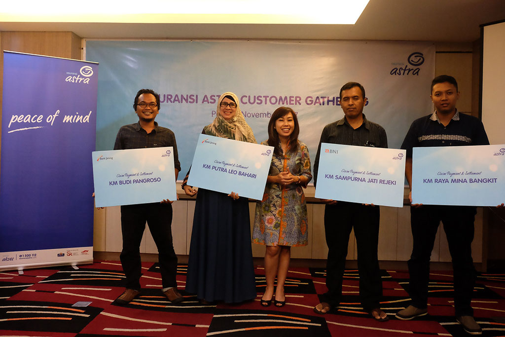 Pembayaran klaim empat unit kapal tersebut dilakukan secara simbolis oleh Tan Lenny, SVP Commercial Business Asuransi Astra di The Safin Hotel, Pati pada Jumat (24/11). Keempat kapal yang ikut terbakar bersama belasan kapal lain dalam musibah kebakaran yang terjadi di pelabuhan Juana, Pati, Jawa Tengah pada 15 Juli 2017 itu adalah aset pelanggan Asuransi Astra. Adapun nama-nama kapalnya adalah KM Putera Leo Bahari, KM Budi Pangroso, KM Sampurna Jati Rejeki, KM Raya Mina Bangkit.