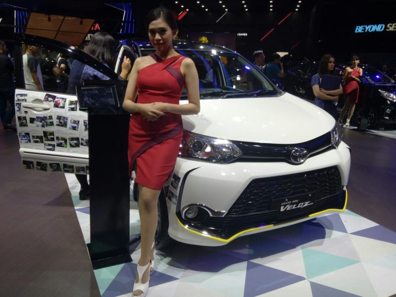 Sedang yang satunya Grand New Veloz didisplay tak jauh di depan panggung booth Toyota. (BS)
