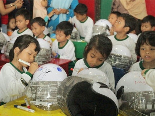 “Seharusnya hari Sabtu anak-anak libur, karena kegiatan ini positif dan belum pernah ada jadi semua masuk termasuk guru-gurunya. Biasanya anak-anak mewarnai di media kertas tapi ini di helm,” ungkap Anas Hafas, Kepala Sekolah TK Islam Nurul Falah.