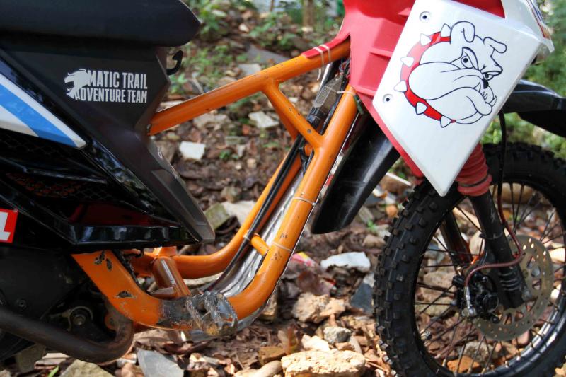 Namun setelah beberapa kali main lumpur alias off road di beberapa tempat, ubahan matik jebolan Yamaha yang belum ekstrim ini, kurang optimal saat melibas medan yang cukup terjal, curam dan kombinasi trek yang lain.