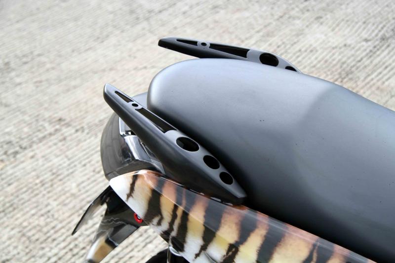 “Untuk pengerjaan airbrush motif macan ini, butuh waktu sekitar 2 minggu. Sedangkan urusan aksesori, tinggal comot dari etalase toko dengan lama pemasangan sekitar satu jam,” papar Tukijan, empunya ARM Motor. (Banar)