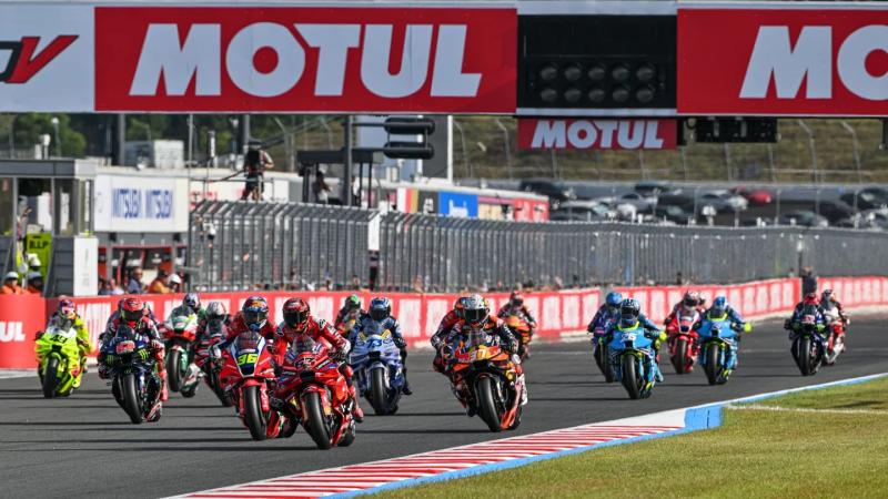 Di bawah sorotan lampu start, Francesco Bagnaia dari tim Ducati Lenovo Team kembali menunjukkan launch sempurna, merebut holeshot di depan rookie Pedro Acosta dari Red Bull KTM Factory Racing dan Marc Marquez di posisi ketiga.