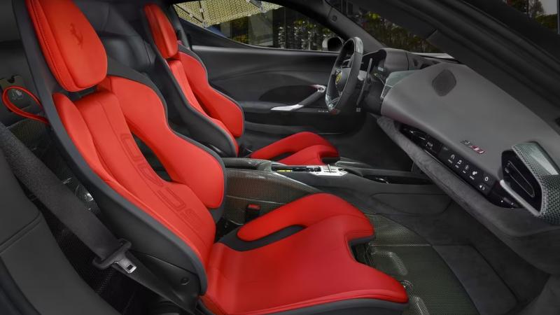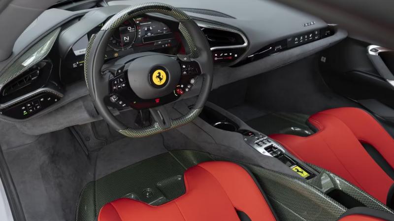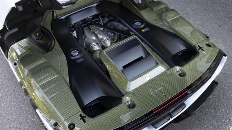 Bahkan detail kecil seperti tulisan "Ferrari" pada penutup mesin belakang, yang dicetak secara negatif untuk memperlihatkan karbon di bawahnya, menunjukkan tingkat personalisasi yang ekstrem.