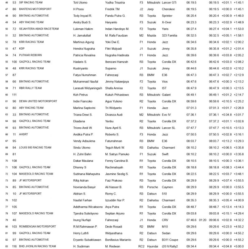 Persaingan ketat berlanjut di posisi ketiga, di mana Egon NST/Gerry Rosanto dari 73 Garage (Skoda Fabia Rally2 evo, RC2) mencatatkan waktu 04:37.8, hanya selisih +0:01.7 dari Tb Adhi, dan total tertinggal +0:03.4 dari pemimpin klasemen.