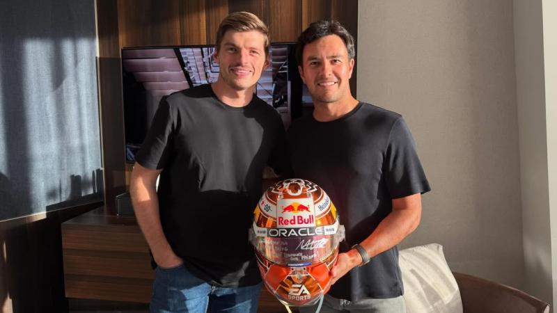 Melalui unggahan di media sosial pribadinya, pembalap yang akrab disapa Checo tersebut memamerkan foto dirinya bersama Verstappen. Dengan senyum lebar, Perez memegang helm pemberian sang juara dunia yang dibubuhi pesan menyentuh pada bagian visornya.