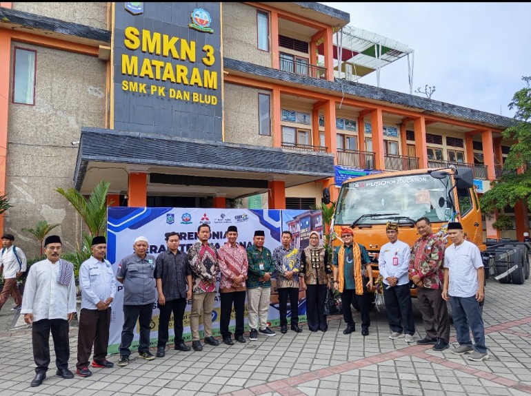 mobilinanews (Jakarta) - PT Krama Yudha Tiga Berlian Motors (PT KTB), mendonasikan satu unit Mitsubishi Fuso Fighter sebagai kendaraan praktik ke SMK Negeri 3 Mataram, Nusa Tenggara Barat.